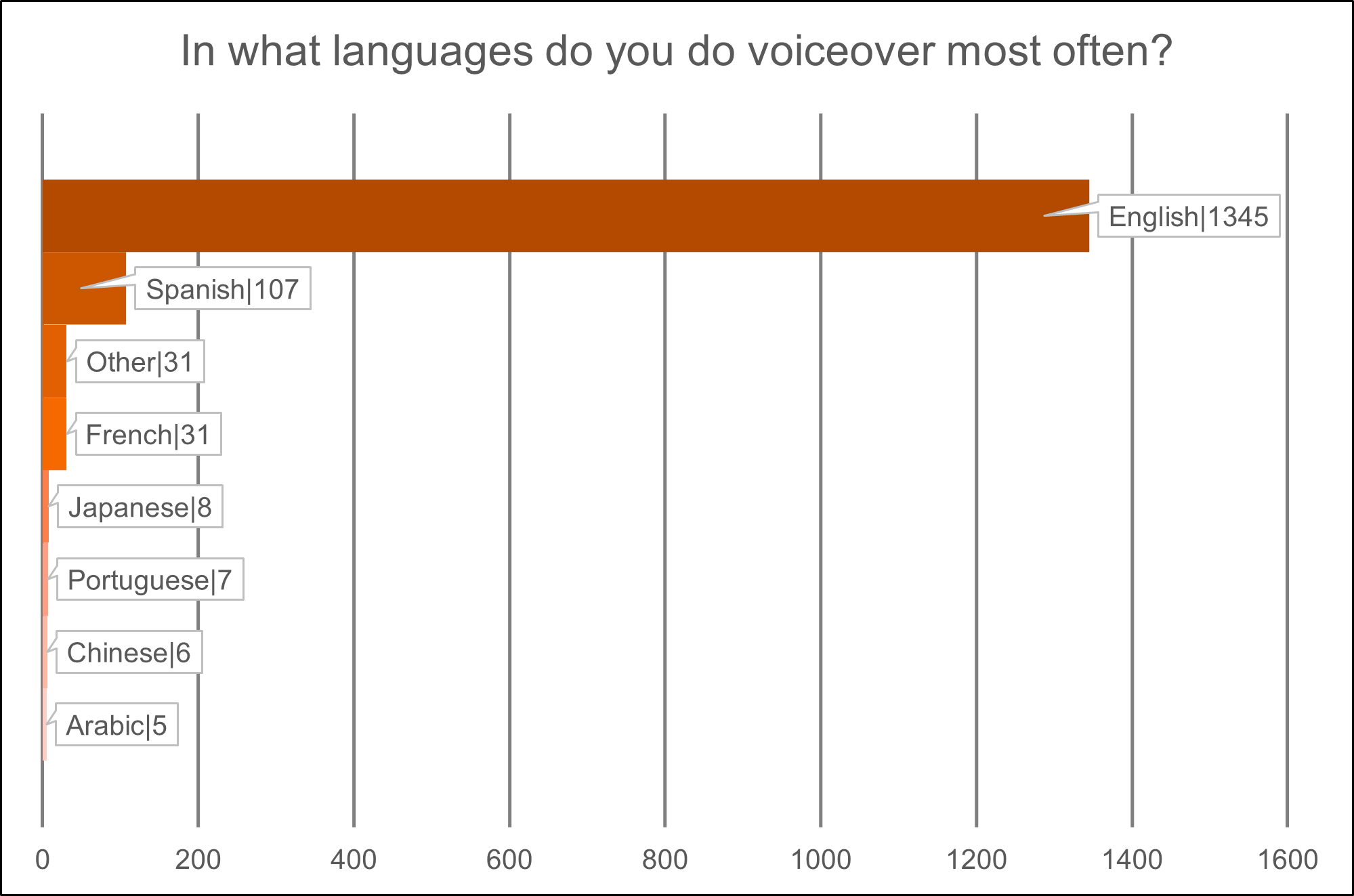 In what languages do you do voiceover most often